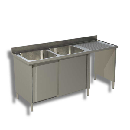 Home Mobili in Acciaio INOX Lavelli e lavatoi vari Lavatoio armadiato con due vasche, porta scorrevole e vano pattumiera a destra