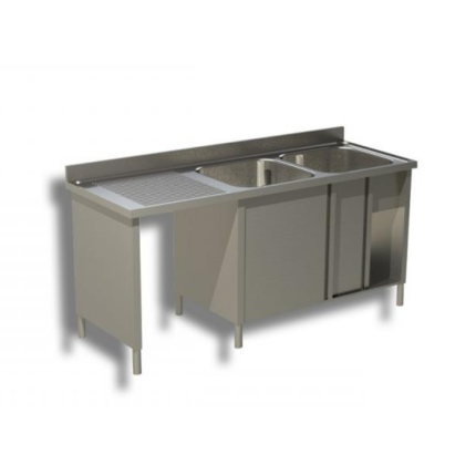 Home Mobili in Acciaio INOX Lavelli e lavatoi vari Lavatoio armadiato con due vasche, porta scorrevole e vano pattumiera a sinistra