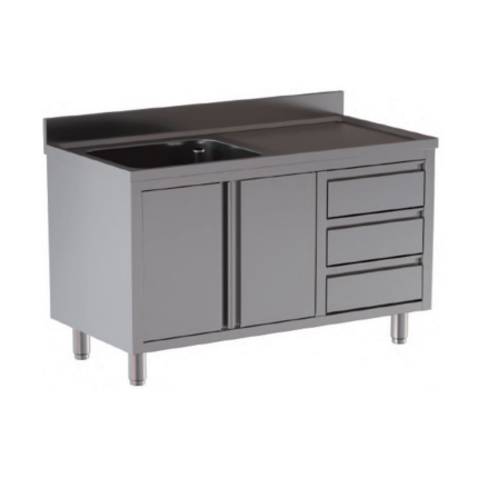 Home Mobili in Acciaio INOX Lavelli e lavatoi vari Lavatoio armadiato con una vasca, gocciolatoio a destra, due porte e tre cassetti a destra
