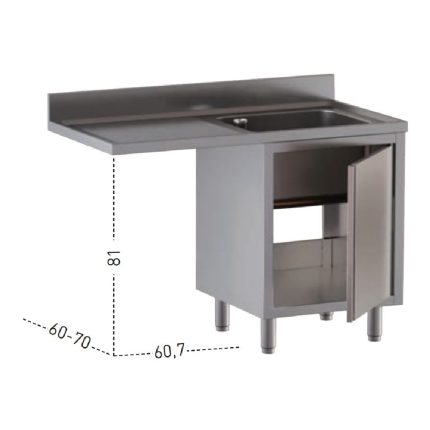 Home Mobili in Acciaio INOX Lavelli e lavatoi vari Lavatoio armadiato con una vasca, vano lavastoviglie a sinistra e ripiano