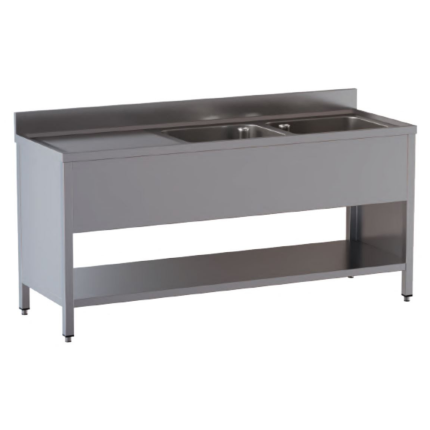 Home Mobili in Acciaio INOX Lavelli e lavatoi vari Lavatoio su fianchi con due vasche, gocciolatoio a sinistra e ripiano