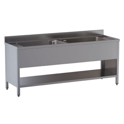 • Tavolo da lavoro con piano di fondo e vasca a destra
