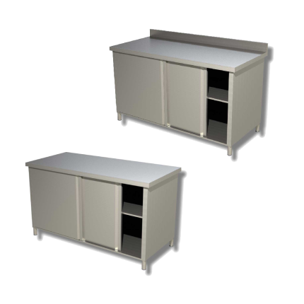 Tavolo armadiato con porte scorrevoli – acciaio inox – Profondità 80 cm