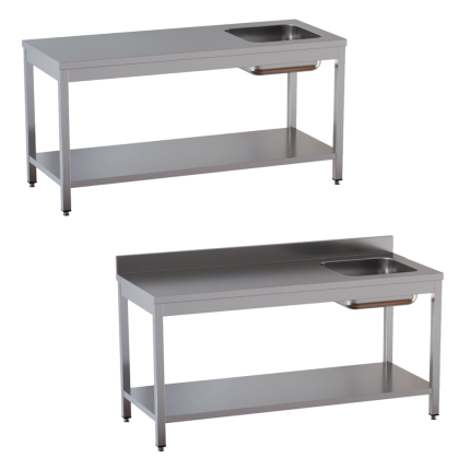 Tavolo da lavoro in acciaio inox – con piano di fondo e vasca a destra – Profondità 60 cm
