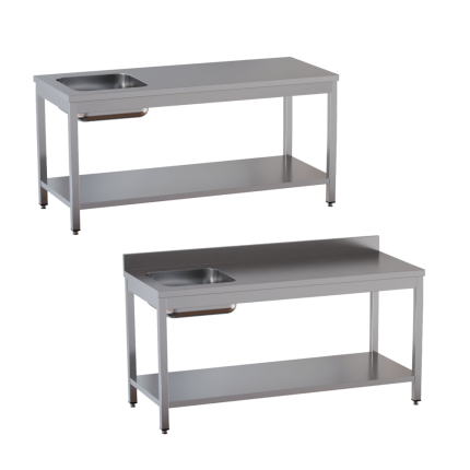 Tavolo da lavoro in acciaio inox – con piano di fondo e vasca a sinistra – Profondità 60 cm