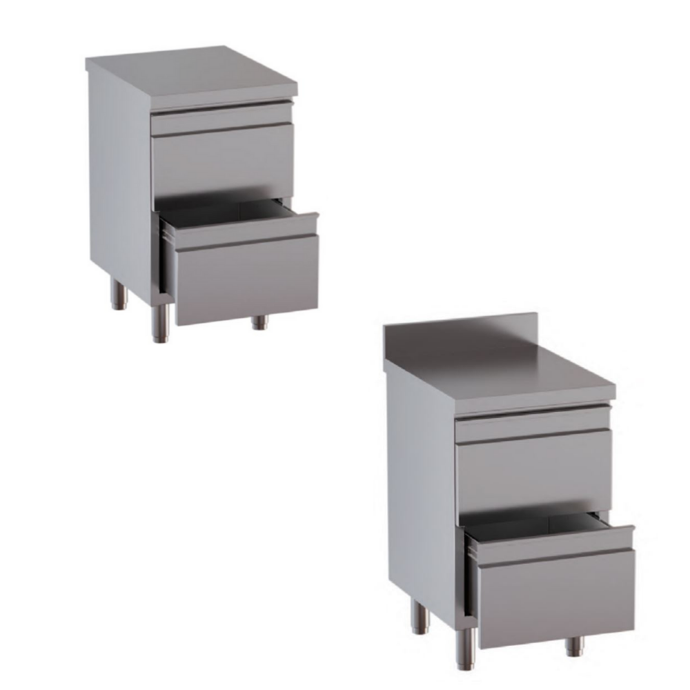 Cassettiera – 2 cassetti – acciaio inox – Profondità 70 cm