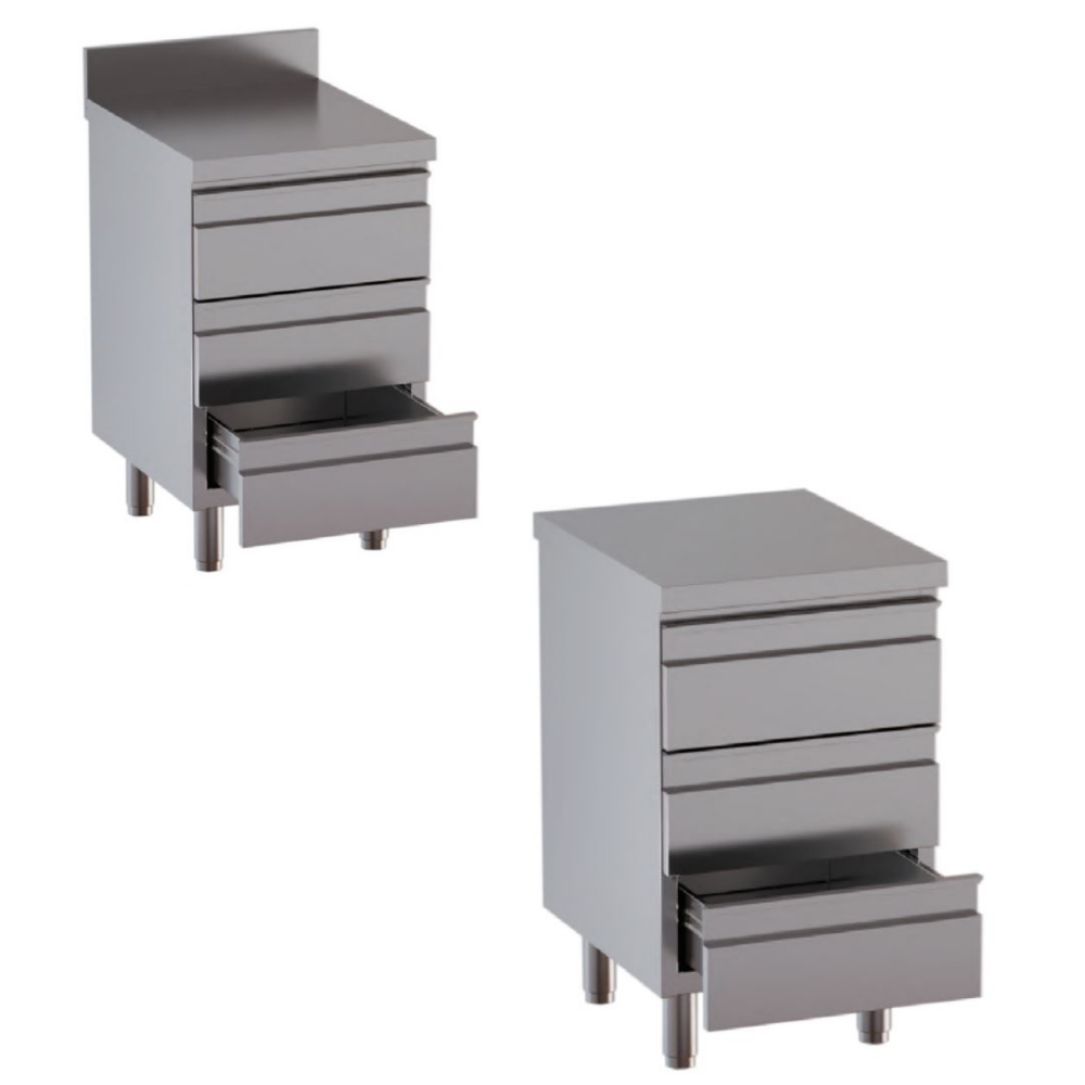Cassettiera – 3 cassetti – acciaio inox – Profondità 60 cm
