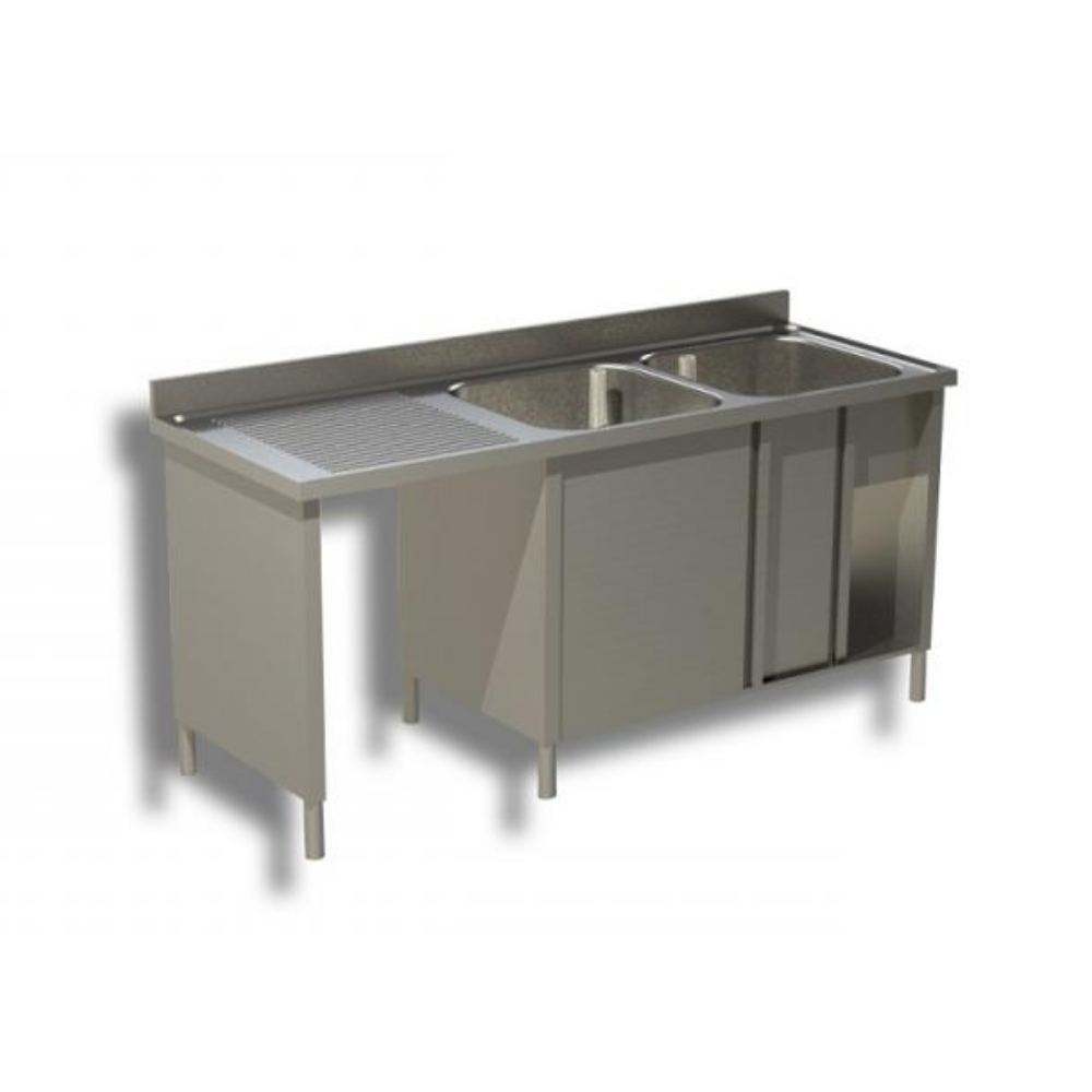 Home Mobili in Acciaio INOX Lavelli e lavatoi vari Lavatoio armadiato con due vasche, porta scorrevole e vano pattumiera a sinistra Lavatoio armadiato con due vasche, porta scorrevole e vano pattumiera a sinistra – Profondità 70 cm