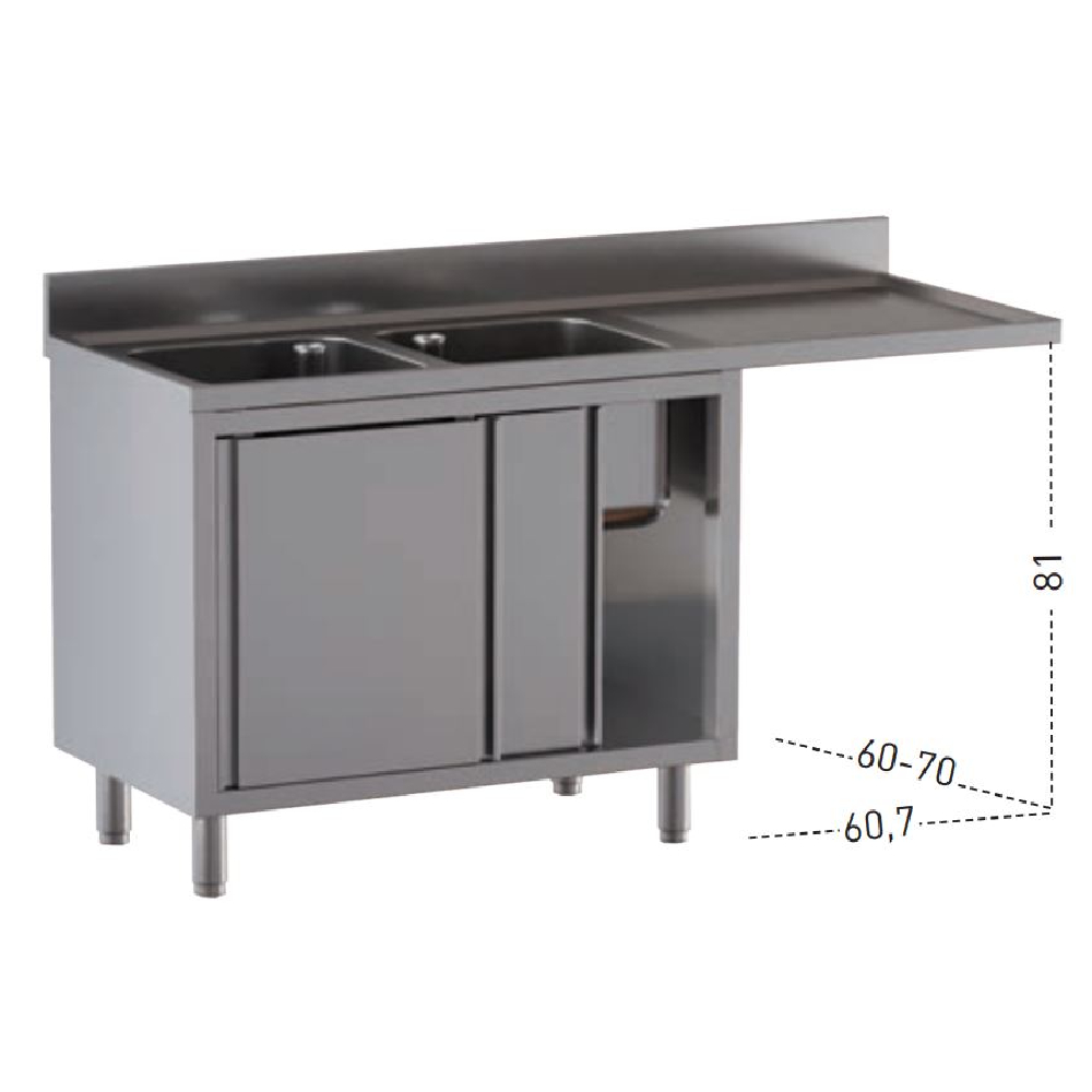 Lavatoio armadiato con due vasche, vano lavastoviglie a destra e ripiano – Profondità 70 cm