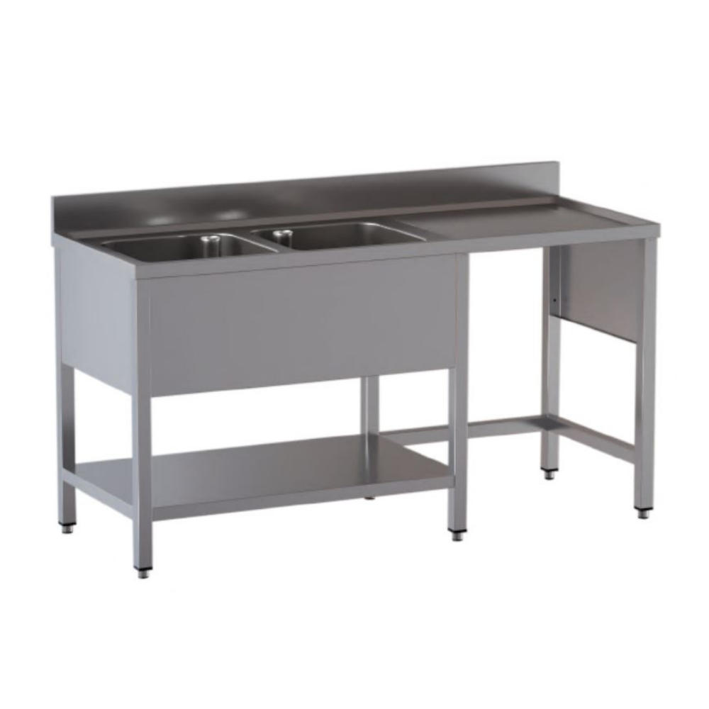 Home Mobili in Acciaio INOX Lavelli e lavatoi vari Lavatoio con due vasche, vano pattumiera a destra e ripiano Lavatoio con due vasche, vano pattumiera a destra e ripiano – Profondità 70 cm