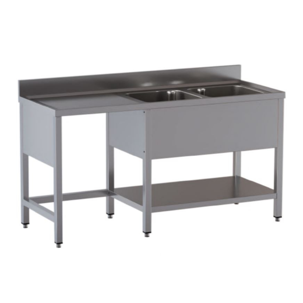 Home Mobili in Acciaio INOX Lavelli e lavatoi vari Lavatoio con due vasche, vano pattumiera a sinistra e ripiano Lavatoio con due vasche, vano pattumiera a sinistra e ripiano – Profondità 70 cm