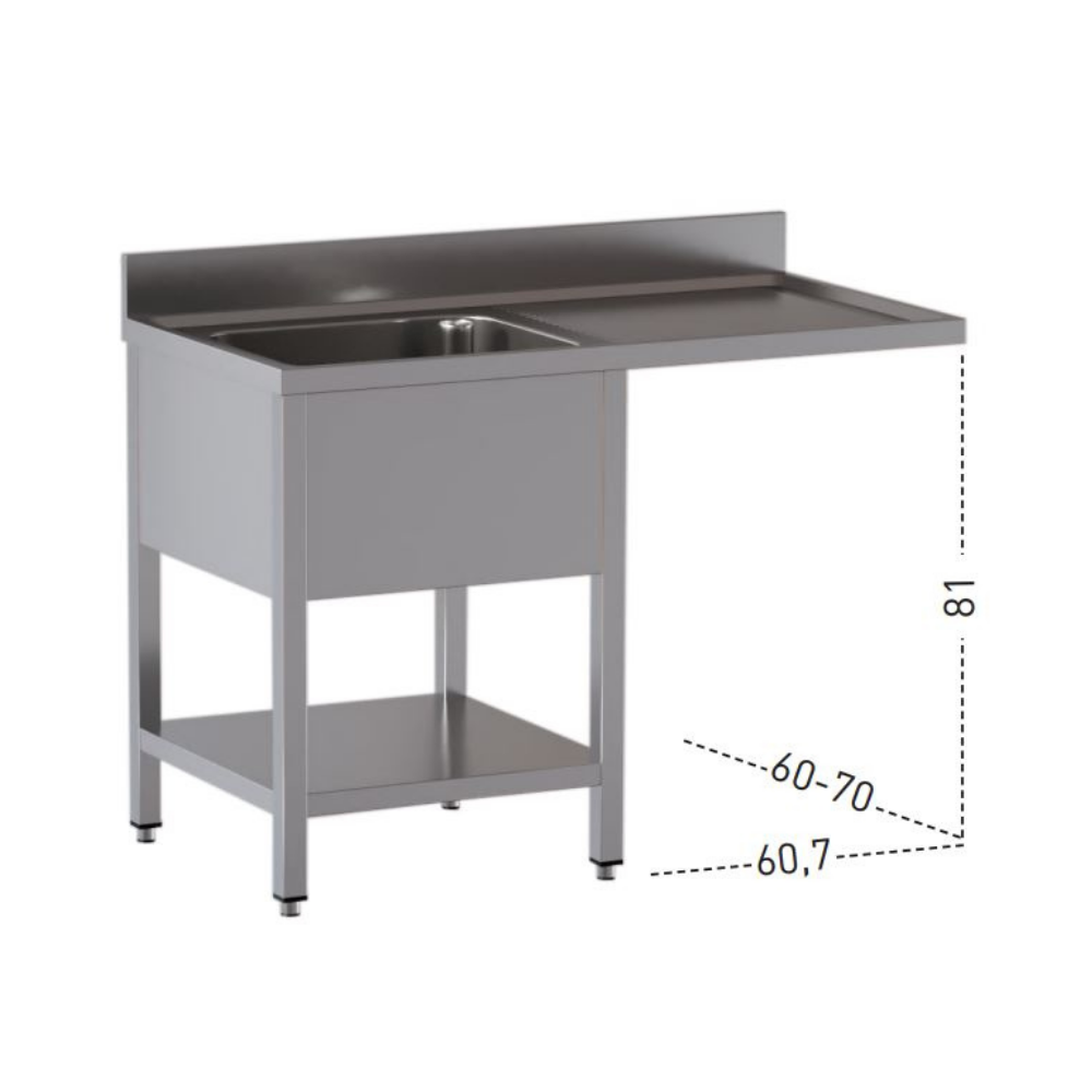 Lavatoio con una vasca, vano lavastoviglie a destra e ripiano – Profondità 70 cm