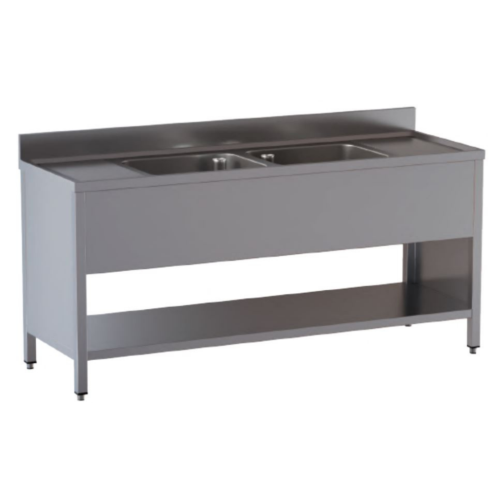 • Con: 2 vasche, 2 gocciolatoi ai lati e ripiano