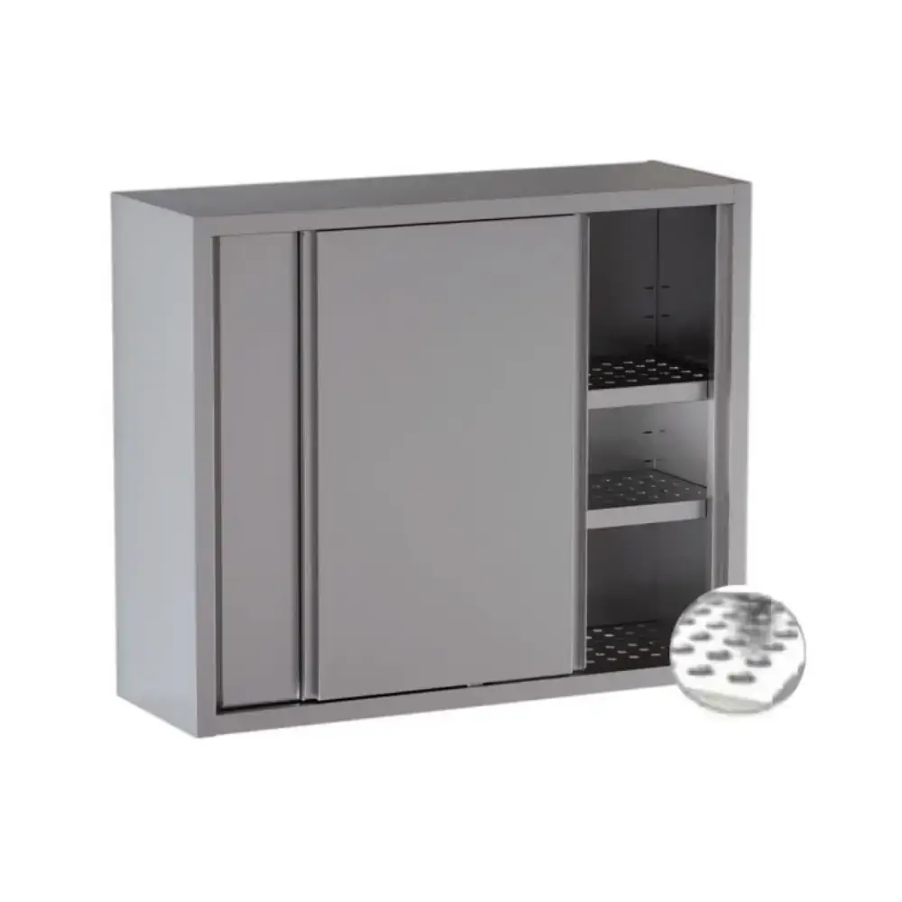 Home Mobili in Acciaio INOX Pensili in acciaio inox Pensile con due ripiani, gocciolatoio e porte scorrevoli – Altezza 100 cm – Profondità 40 cm – Larghezza a scelta