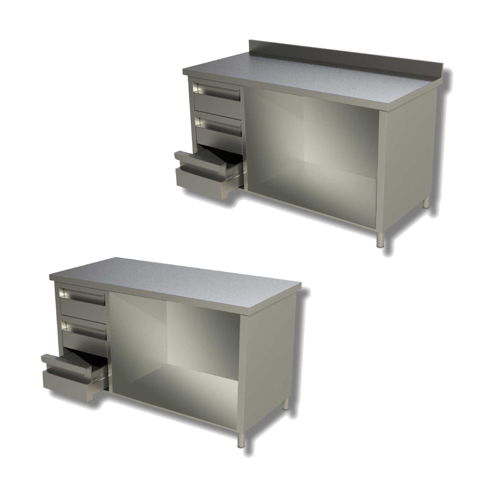 Tavolo a giorno con 3 cassetti a sinistra – acciaio inox – Profondità 70 cm