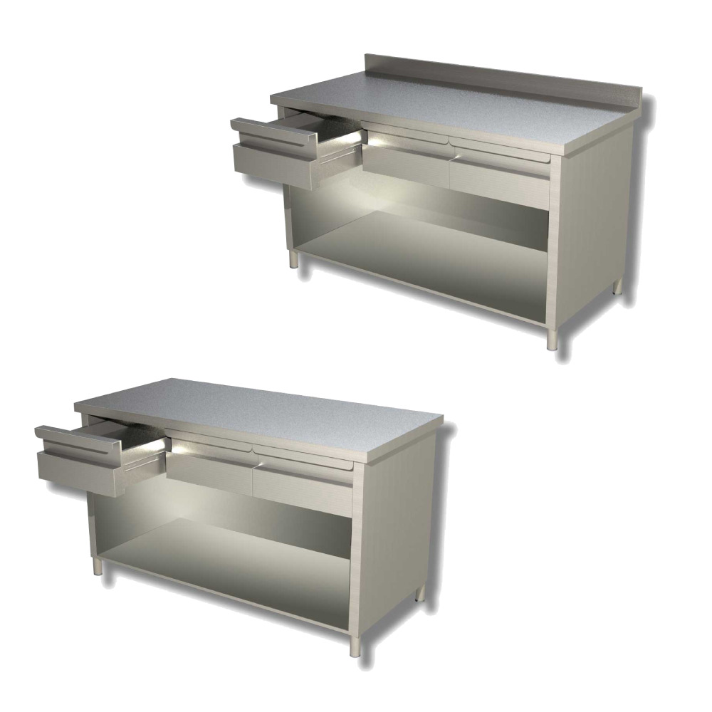 Tavolo a giorno con cassetti – acciaio inox – Profondità 70 cm